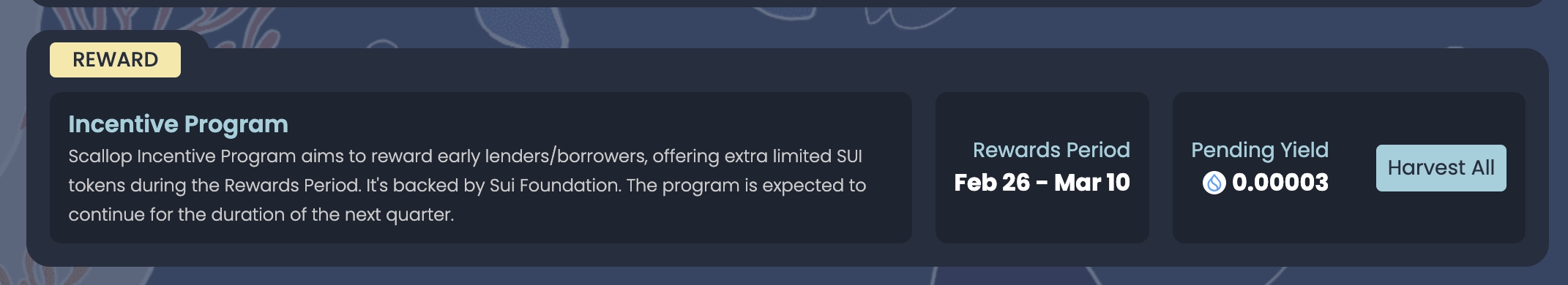您也可以在該面板中領取借款獎勵。因此,如果您抵押 sCoin 並同時借入具有獎勵年利率的資產,這意味著您將同時從借貸池和借款池獲得獎勵激勵計劃的回報。