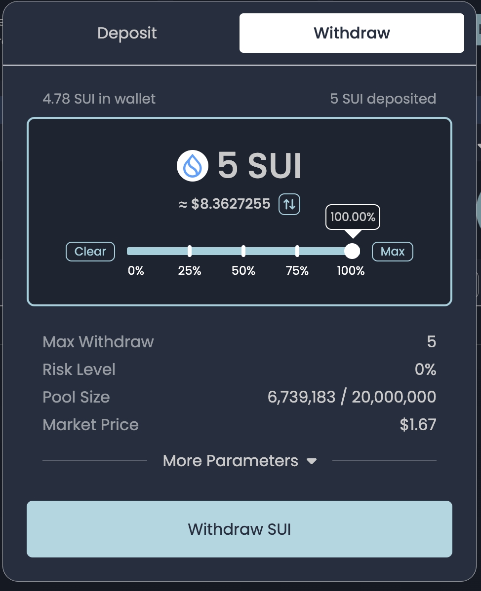 在提取抵押品之前,請確保已償還所有借入的資產及其利息。一旦您償還了所有債務資產,就可以從抵押池中提取所有資產。