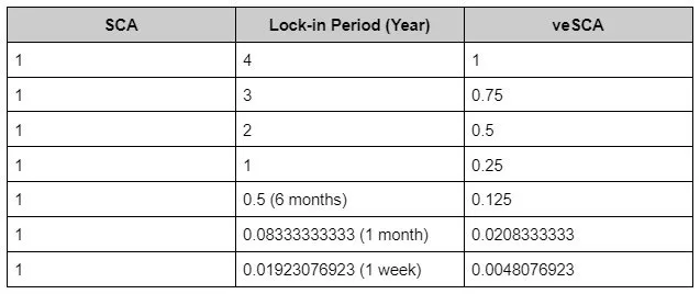 鎖定時間越久,會獲得越多 veSCA 。